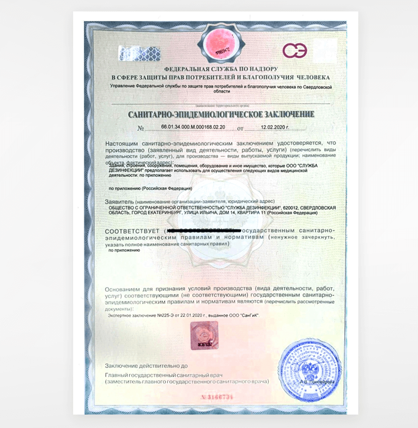 Лицензия позволяет компании оказывать услуги дезинфекции по всей России.